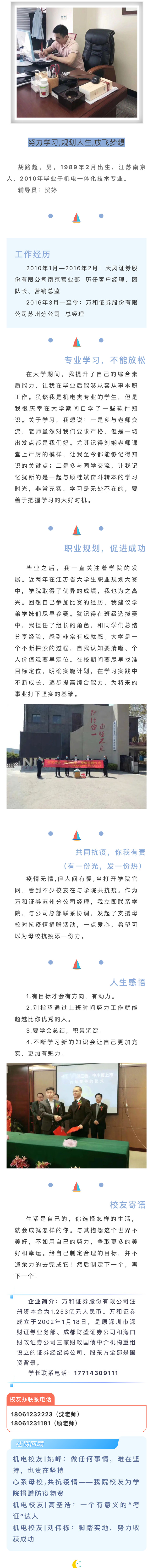 【机电校友】胡路超:努力学习,规划人生,放飞梦想