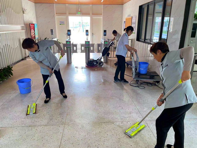 打造舒心温馨生活环境,宿舍公共区域全面保洁,淋浴间深度清洁,不锈钢保养(楼梯扶手,消火栓,电梯厅,茶水间,闸机),宿舍连廊窗户清洁(内外玻璃,窗缝,露台),宿舍连廊大厅清洗,宿舍走廊养护(单擦机磨地,洗地机清洗,淋浴间门口打蜡,窗户清洁),老生宿舍清洁421间、新生宿舍全面清洗298间。