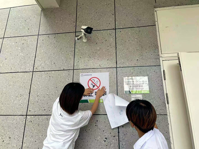 新标识替换旧标识,开学迎新布置,疫情防控消毒喷洒300余次,宿舍楼外卫生死角清理和全面消杀,学院领导深入宿舍检查。
