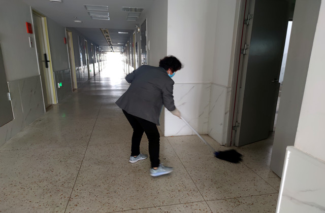“让同学们生活在舒适的环境中 再辛苦也值得”~清晨,同学们陆续走出宿舍楼奔赴课堂,宿舍楼内的保洁阿姨也开始在自己的“责任区”进行一天的工作,擦洗楼道、清理垃圾、打扫淋浴间,力求把每个角落都打扫得一尘不染。阿姨的心愿就是希望学生们下课回来后都能在干净、整洁、温馨的宿舍环境里学习生活,再辛苦也值得。