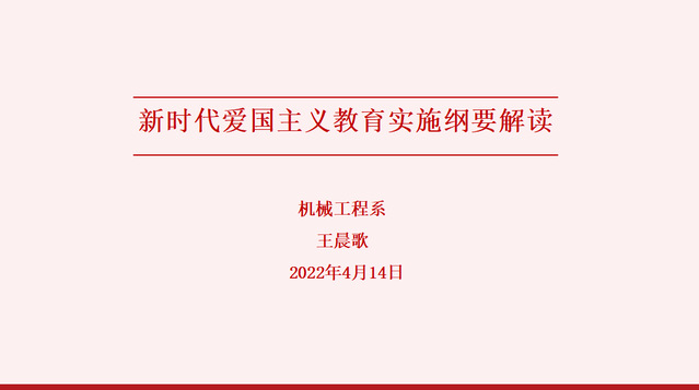 王晨歌老师分享的是《新时代爱国主义教育实施纲要》学习心得,爱国主义是中华民族的民族心、民族魂,是中华民族最重要的精神财富,是中国人民和中华民族维护民族独立和民族尊严的强大精神动力。要深刻理解习近平新时代中国特色社会主义思想的核心要义,要紧密结合人们生产生活实际,把学习教育成果转化为爱国报国的实际行动。王老师从总体要求、基本内容、新时代爱国主义教育、丰富实践载体四个方面,结合育人实际深入解读。