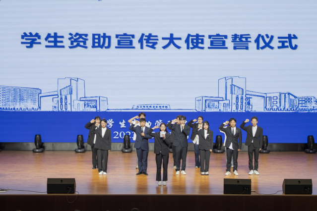 随后进行“学生资助宣传大使”受聘仪式。学生资助管理中心主任钱莉娇为第六届学生资助宣传大使颁发聘书。过后,新一届学生资助宣传大使集体宣誓:“勤学善思,做资助政策的学习者;播撒爱心,做资助政策的传播者;脚踏实地,做知恩感恩的践行者。我们一定不辱使命,砥砺前行,把资助政策带进更多困难学生家庭。”这铿锵有力的誓词,表达了他们励志成才、不辱使命、播撒爱心的决心。