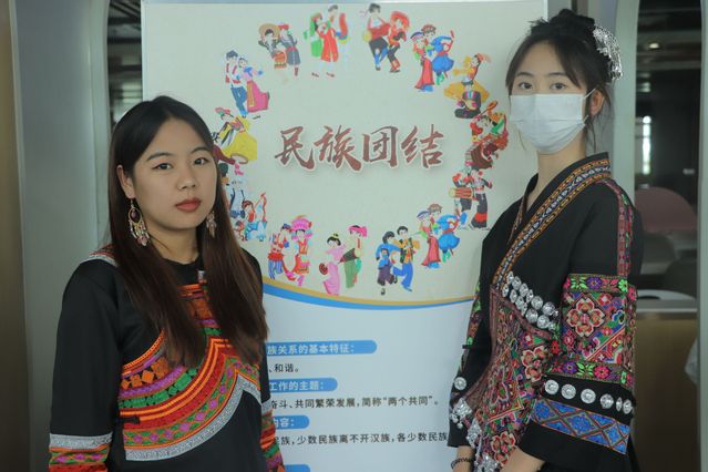 学生工作处钱莉娇老师首先带领各个民族同学共同学习国家民族政策宣传展板,她希望同学们多多参与红石榴班的民族特色活动,宣传和发扬各民族特色文化,实现多彩民族,百花齐放,让更多大学生了解和喜爱民族文化。