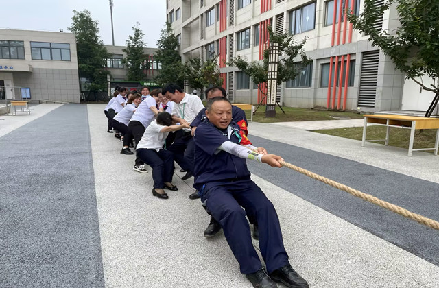 活动伊始,学生工作处大学生生活服务与管理中心主任张进宝强调了本次团建活动安全注意事项,要求活动中保证自身安全,安全第一,比赛第二。在张进宝主任的组织下,气球传纸杯、灭火器接力赛、拔河比赛有序开展。在紧张激烈的活动中,宿管老师、保洁阿姨、工程师傅积极出谋划策,默契配合,在集体中贡献自己力量,挑战自己。
