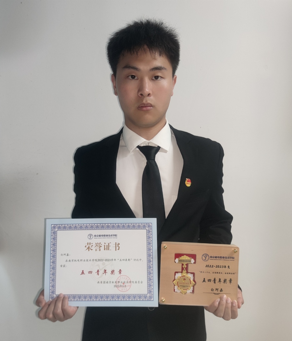 白珂嘉,男,汉族,共青团员,米兰官方网页版自动化工程系机电一体化技术专业2021级专科生。曾任自动化工程系团总支学生副书记,机电一体化技术217班宣传委员,润泽苑119宿舍长。荣获了“国家奖学金”等3项国家级荣誉,“第六届江苏省大学生知识产权知识竞赛优秀奖”等2项省级荣誉,“五四青年奖章”等23项校级荣誉,“高压电工上岗证”等11项技能证书,实用新型专利受理1项。