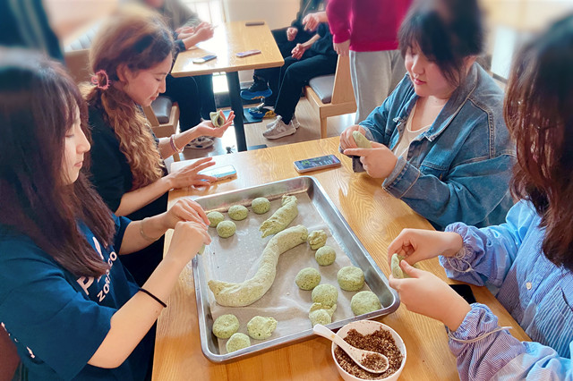 为弘扬民俗文化,继承传统习俗,让同学们感受节气魅力,厚植爱国情怀,提升劳动品质,结合本校学生劳动教育的实际,充分融入地域特色,学校于四月二日在一粟堂开展了“宿”雅春风予清明 香糯青团增友情——青团制作主题活动,本次活动组织了东吴物业的宿管阿姨们以及二百余名同学一同参加。