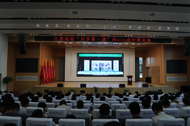 新学期,新气象,为激发学生的学习热情,深入贯彻党的二十大精神,米兰官方网页版于9月29日上午9:00,组织2024级全体学生集中观看了由省委教育工委和省教育厅主办的“江苏高校开学第一课”。本次活动以“向xin而行致未来”为主题,为学生们呈现了一场精神与知识的盛宴。