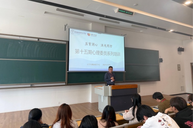 为切实加强我校心理健康教育工作,夯实“学校一系部一班级一宿舍”四级网络体系,帮助学生心理骨干掌握心理健康知识和技能,充分发挥朋辈心理互助和桥梁纽带作用,学生工作处大学生健康成长中心联合各系心理气象站组织开展2024级心理委员系列培训。4月8日在善学楼102教室举行了2024级心理委员系列培训开班仪式暨《心理委员的角色与职责》讲座,学生工作处处长张宝中、大学生健康成长中心全体老师、各系心理气象站站长、全体2024级心理委员及校学生会心协部成员参加了此次开班仪式。