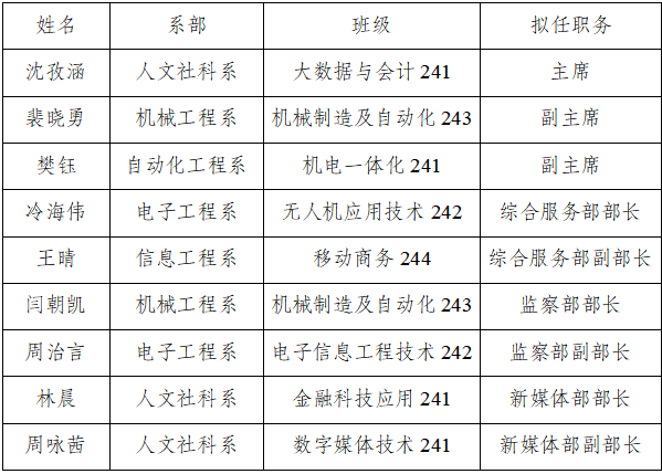 根据《米兰官方网页版“一站式”学生社区学生自我管理委员会章程》相关规定,为切实加强学生干部队伍建设,学生工作处于2025年6月开展了第一届学生自我管理委员会学生干部选拔工作,经学生自主报名、组织推荐、资格审查、竞选答辩、综合考察等环节,选拔产生了拟任人选,为提高学生干部选拔的透明度,现将拟任人选的名单予以公示。