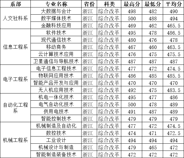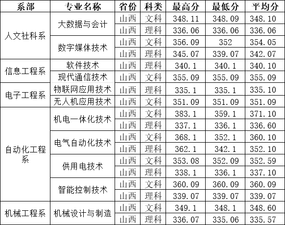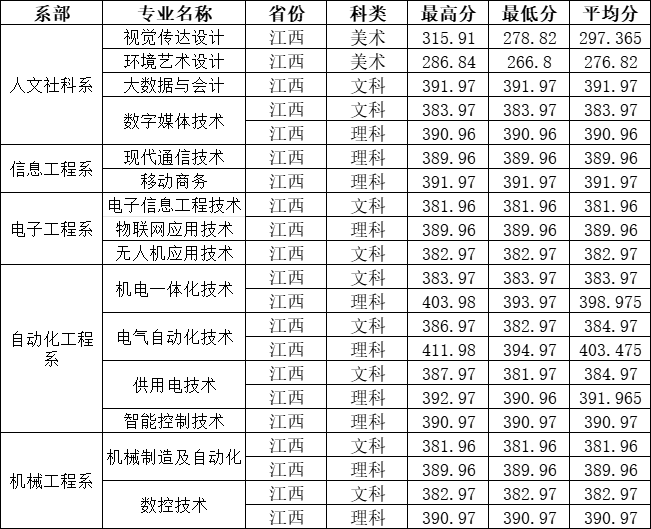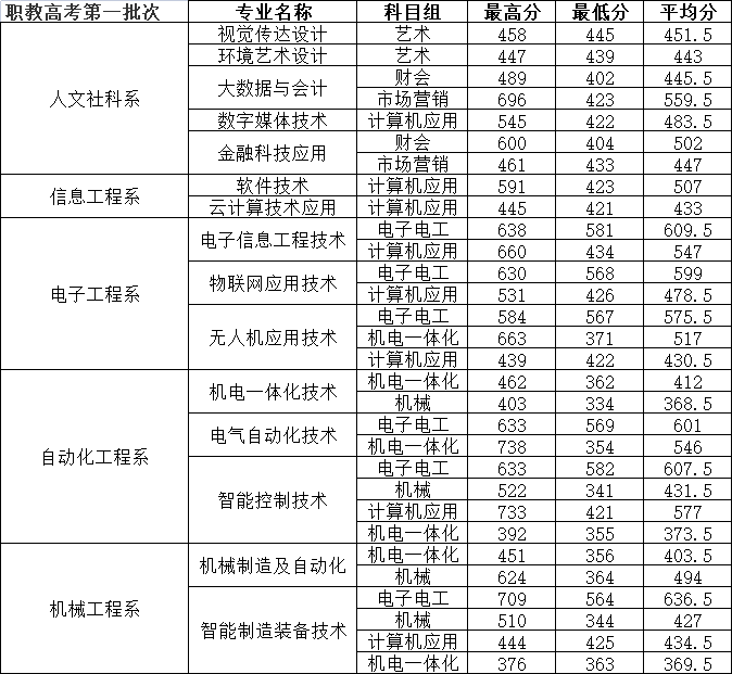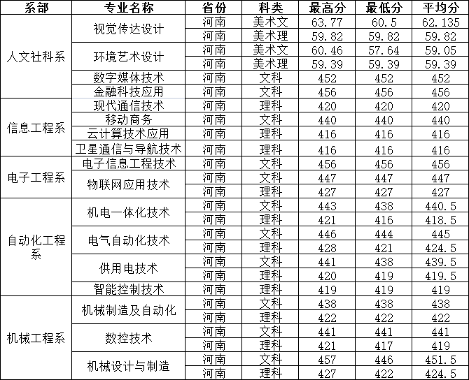 省内各批次各专业分数线