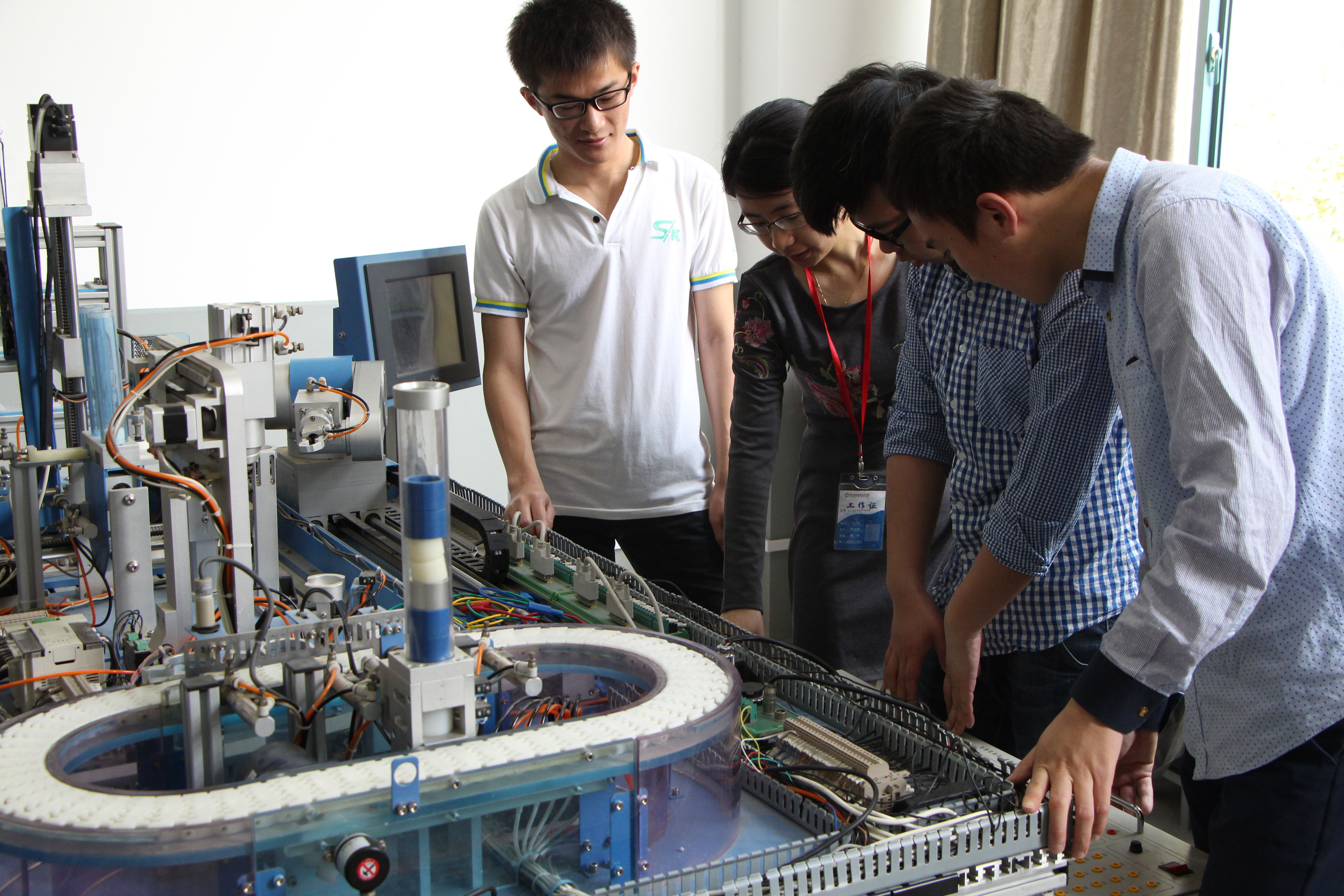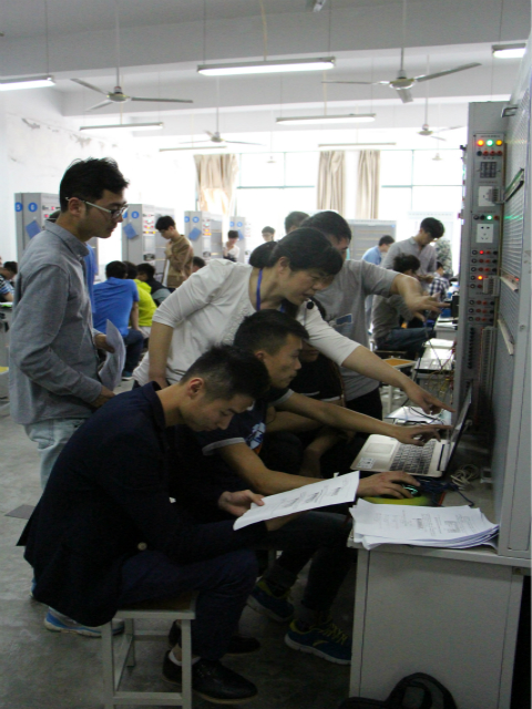 “理实一体化”专业课教学场所(学生完成西门子S7-300、S7-200、触摸屏、变频器等的组网通信连接、7S现场管理等)