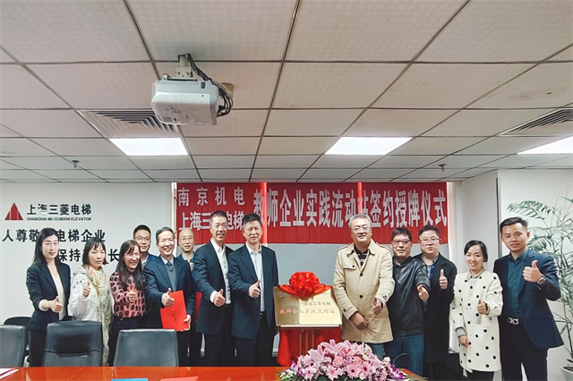 为进一步深化校企合作,强化高素质“双师型”教师队伍建设,推进教师深入企业开展实践锻炼,2022年11月17日,学校应邀前往上海三菱电梯有限公司举行“南京机电-上海三菱电梯教师企业实践流动站”签约授牌仪式。上海三菱电梯有限公司华东一区总经理殷晓晔,总部培训中心总经理王水来,总部培训中心总教务长朱武标,江苏地区维保总监蒋继荣,江苏地区教务长秦勇泉,江苏地区人事主管张愉,学校党委委员、副院长刁爱军,科研与校企合作处处长李木香,教务处副处长丁荣乐,智能制造学院院长自动化工程系主任潘理平、自动化工程系书记高水冕,企业导师及学校进站教师出席本次签约授牌仪式。