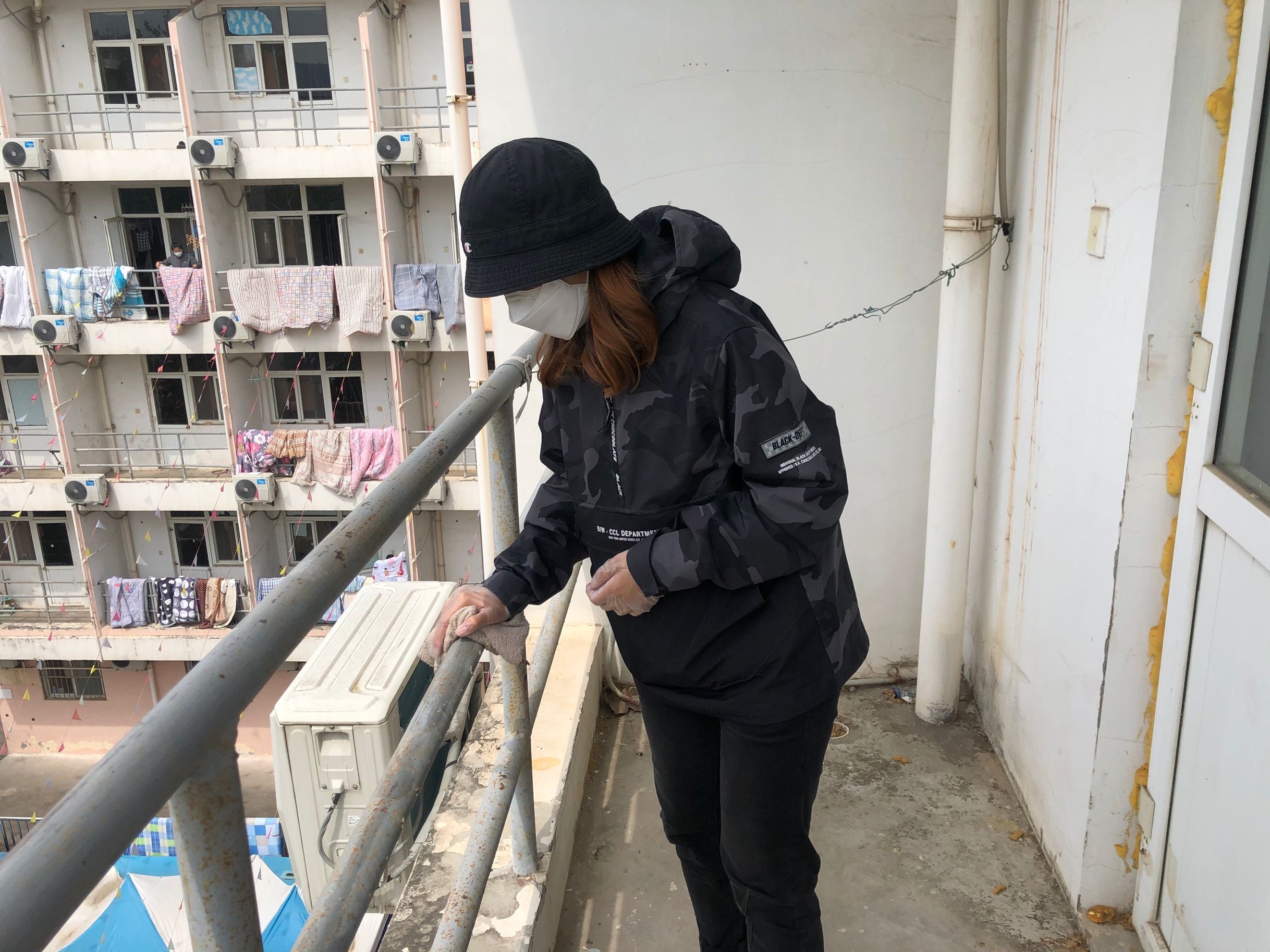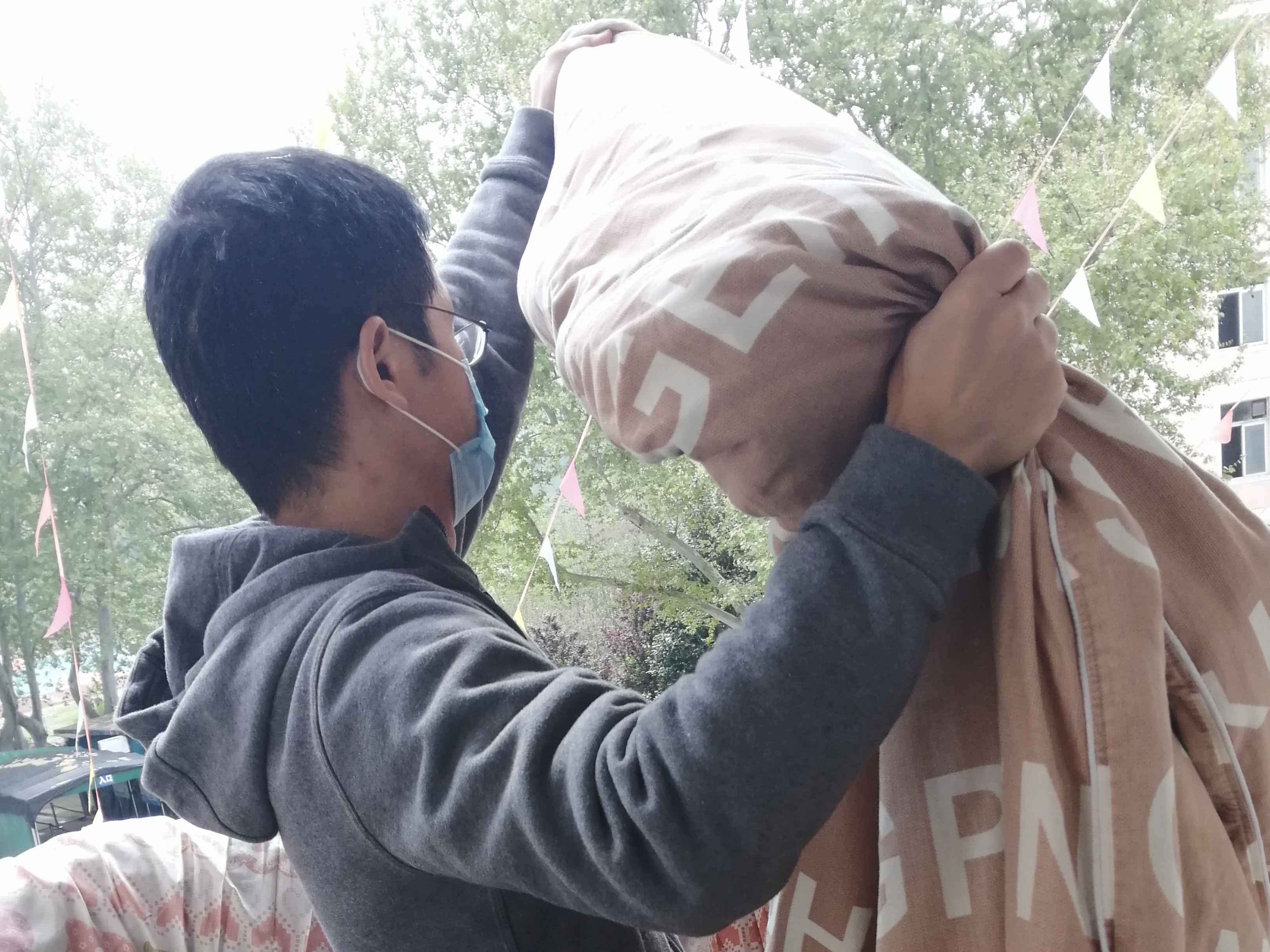 4月14日早晨,因疫情放假已有三余月的学生宿舍热闹起来,自动化工程系全体教职工展开了“为学生晒被”的暖心行动,为2栋宿舍楼100多间宿舍的同学们晒被子、做消毒工作。