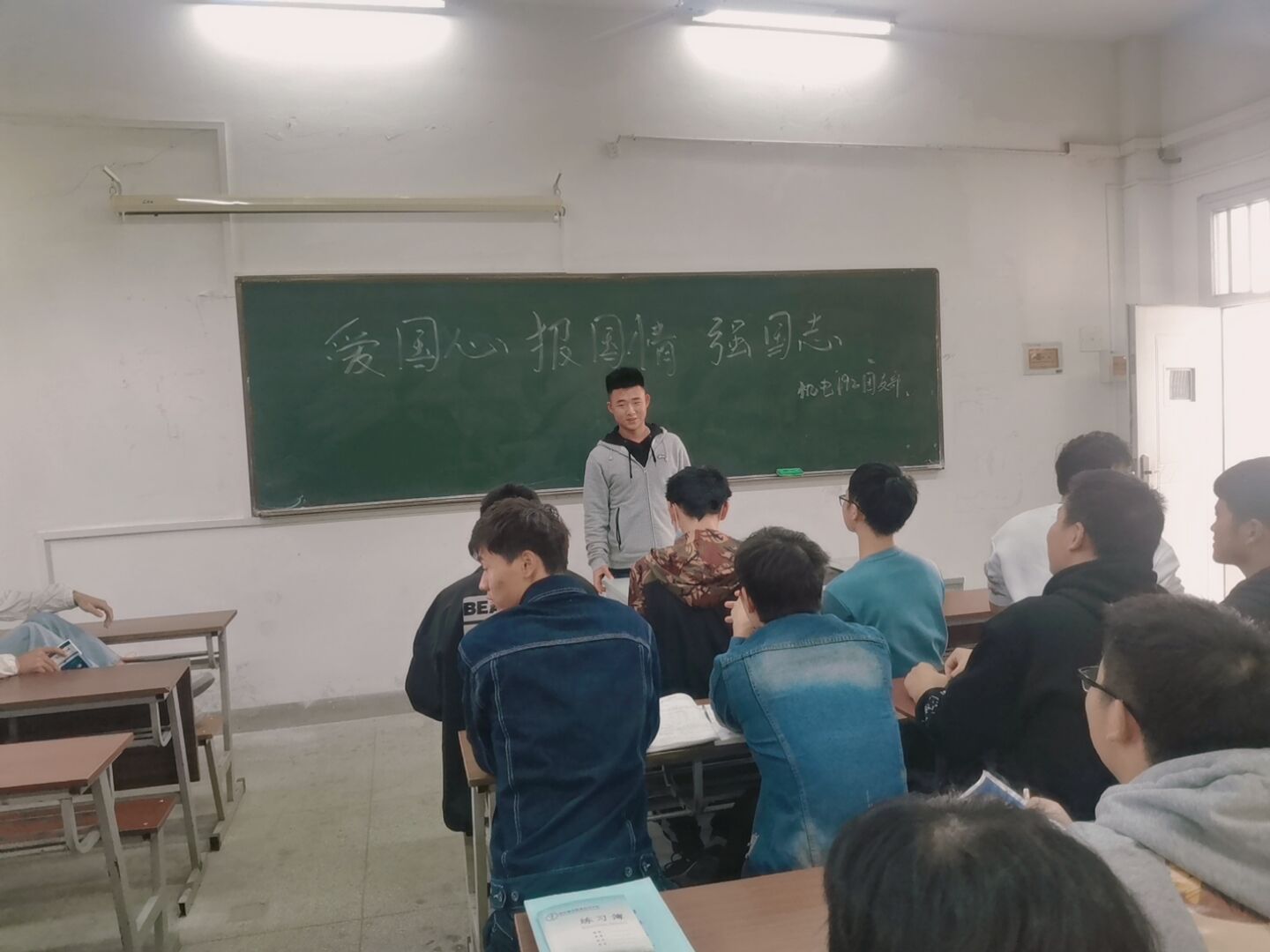 9月21日下午,机电192班团支部在知行楼503开展了以“爱国心报国情强国志”为主题的演讲活动,团支书李荣康主持本次活动。