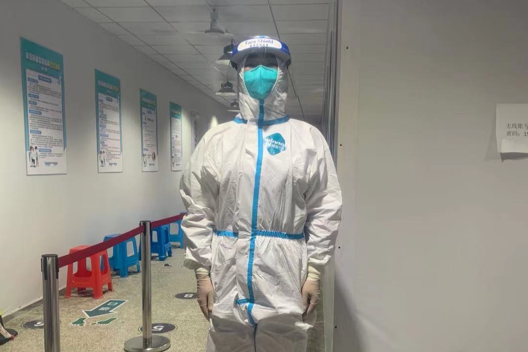 机电一体化技术206班的宋俊在雨花街道丁桥社区参加了志愿者服务,负责支援黄码检测点。他说:“在检测点工作需要全程穿着防护服,从8月2日至4日,我几乎每天早上6点就需要到达检测点,晚上10点多才能结束工作,虽然穿着防护服很闷很热,一直站着引导大家也非常疲惫,但是能够为我的家乡南京贡献一点力量,我感到非常骄傲!”