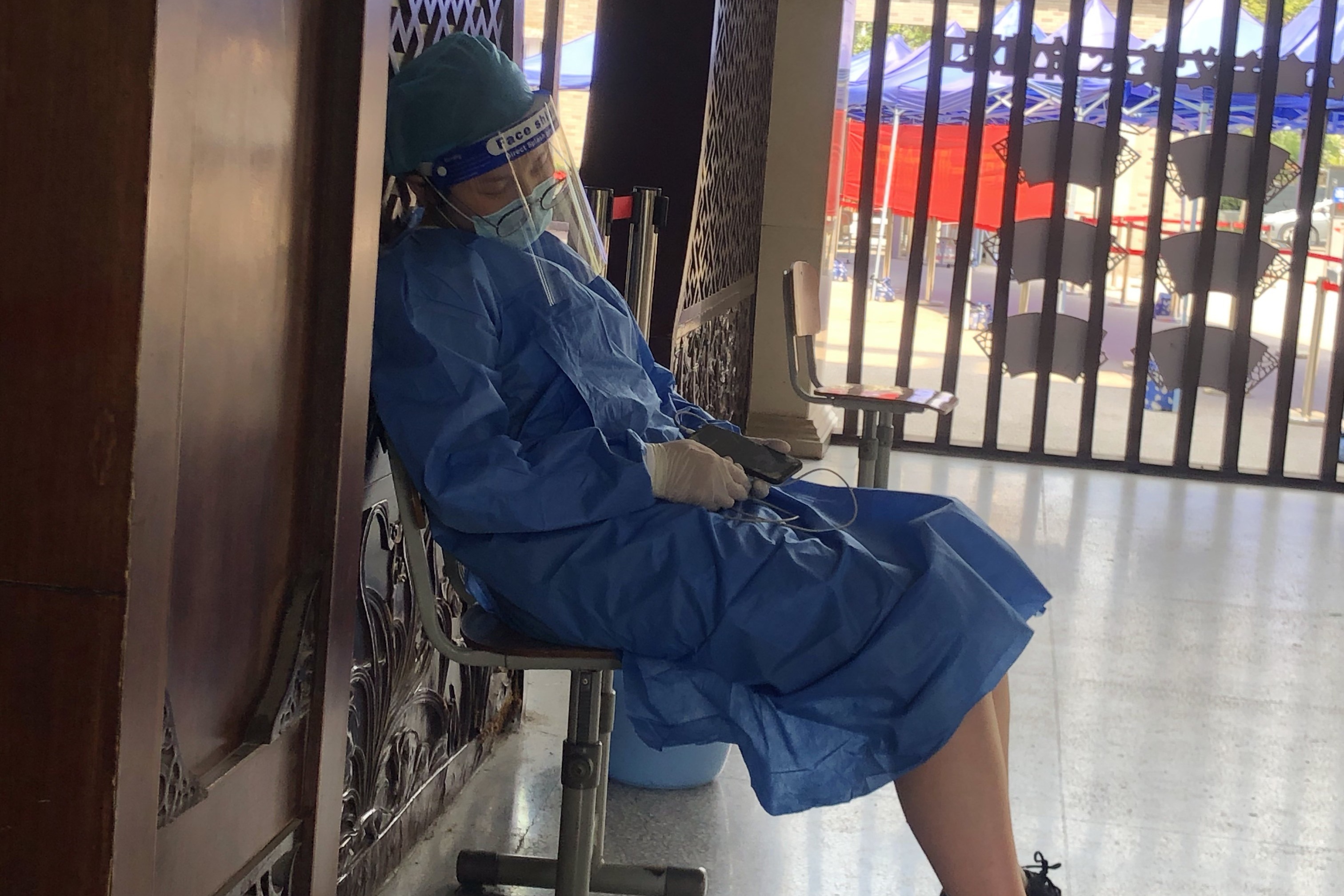 疫情开始,我系党员教师袁佳就参加了栖霞区的志愿服务。7月23日,疫情进入战时状态,袁老师主动请缨去了黄码检测点。她说:“哪里有需要就去哪里。第四次普查时,我负责带队南邮志愿者参加西岗街道广志路小学检测点,连续奋战近16小时,截至8月4日共志愿服务93小时。这期间,被不理解的人指责过,被无法及时查到检测报告的人责骂过,但更多的是大家说的一声谢谢,辛苦了。每次深夜,看到瘫坐在凳子上的医护人员,我都会发自内心的感谢他们,哪有什么岁月静好,不过是有人替我们负重前行。愿并肩同行,打好南京防疫抗疫保卫战。”