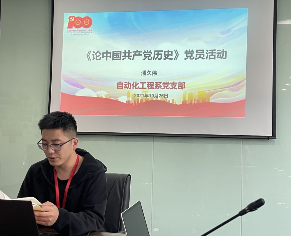 10月26日下午,自动化工程系党支部组织全体党员开展支部党员活动,学习中央党史和文献研究院编辑的习近平同志《论中国共产党历史》,本次活动由党支部宣传委员潘久伟主持,主要学习内容为前三章节。