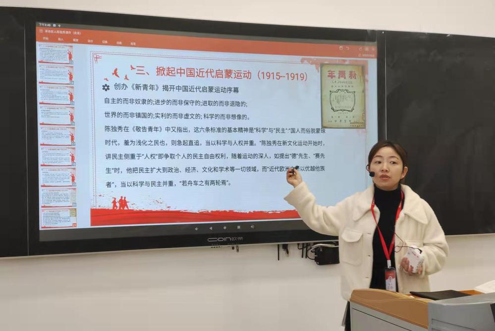 12月3日下午,根据我系党员教师“一人一党课,让红色故事入脑入心”活动,自动化工程系辅导员俞青老师以革命“狂人”陈独秀为主题,在电气203团支部上了一堂生动的专题党课。