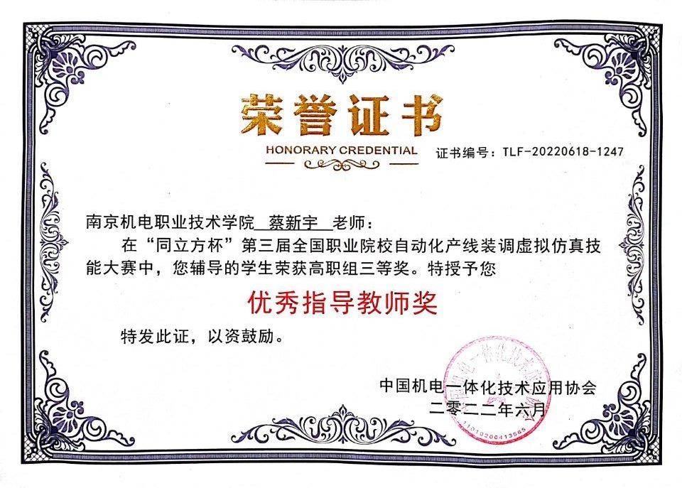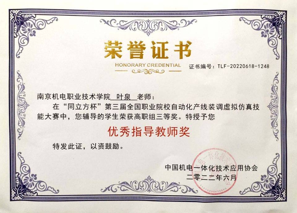 机电一体化教研室叶泉和蔡新宇两位老师精密围绕学院智能制造发展战略,指导参赛选手在课余时间积极备赛,结合历次技能竞赛经验教训,合理安排训练计划,精心设计训练任务,认真解决竞赛难点,此次比赛成绩的获得是参赛选手和指导教师共同努力的结果。