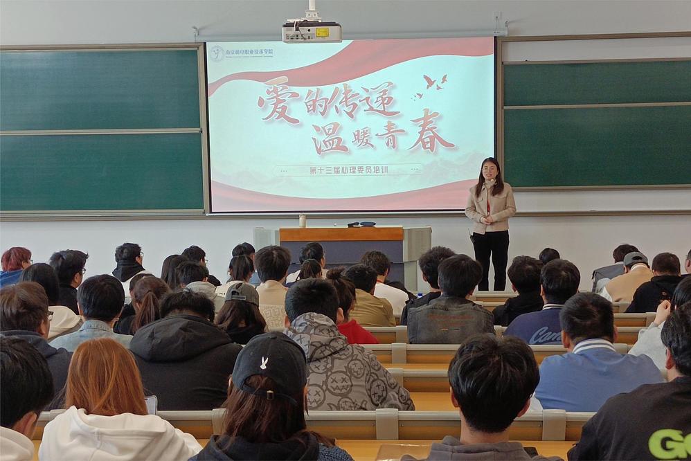 3月28日,为切实加强我校心理健康教育工作,帮助学生心理骨干掌握心理健康知识和技能,充分发挥朋辈心理互助作用和桥梁纽带作用,学生工作处大学生健康成长中心协同各系部组织开展 2022 级心理委员系列培训,第一讲《心理委员工作职责》由大学生成长中心主任龚智俐老师在善学楼101主讲。