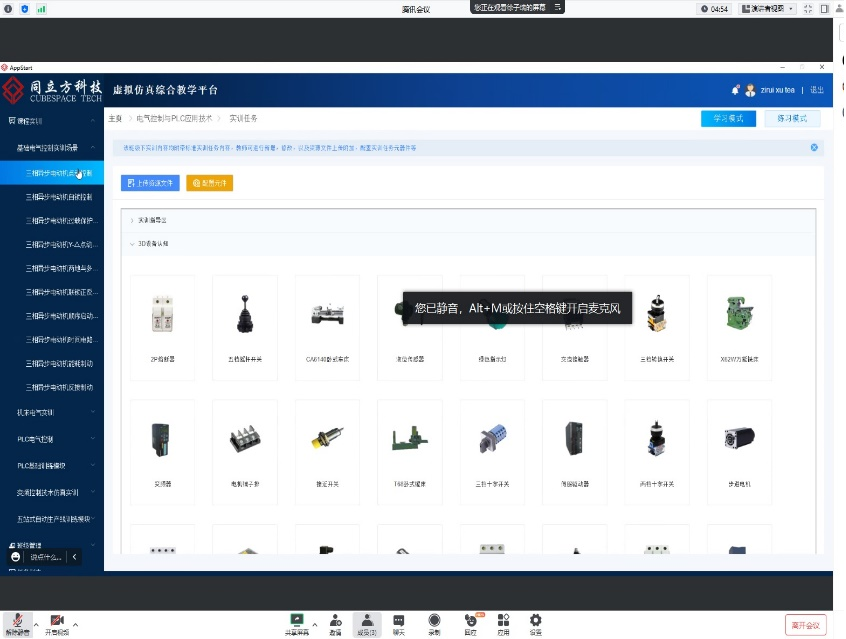 本次培训邀请同立方科技有限公司徐子瑞工程师,针对虚拟仿真综合教学平台软件给老师们进行远程演示和讲解。徐工通过操作对软件功能进行了全方位演示,首先演示虚拟仿真综合教学平台提供的3D模拟实训场景,例如使用者可以在场景中任意漫游、切换视角,并进行任务分析、电气接线、PLC编程、图纸联动、仪表检测、系统调试、排除故障等训练。并且演示了查询任务进度,自动在线评分。同时提供教学视频、操作手册、系统接线图、示范操作任务、PLC参考程序等相关资料。通过展示设备结构、接线效果、操作指引和功能演示,让老师们了解任务内容和场景,掌握操作方法。在演示过程中,老师们学习热情高涨,和徐工进共同探讨和学习,老师们根据自己熟悉的课程,应用仿真软件对教学中典型任务进行了模拟仿真,从而对软件使用有了进一步掌握。