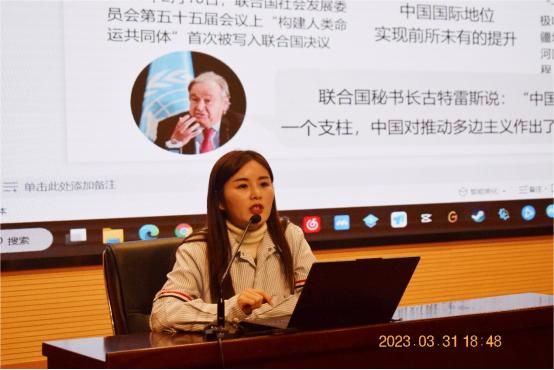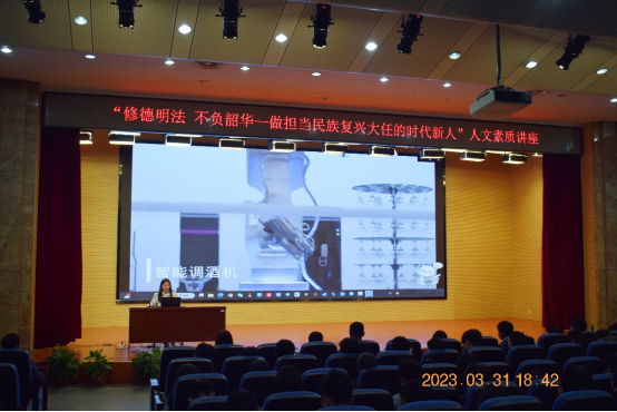 本次讲座于靖欢老师主要从以下三个部分进行了讲解:第一部分,如何读懂我国发展新的历史方位,向同学们讲解了中国特色社会主义进入新时代的判断依据、内涵、意义以及中国梦与青年梦的关系,展示了党的十八大以来,我们国家在经济、科技、国防、综合国力上的提升,引导同学们思考这些新变化下当代青年如何乘势而上、顺势而为;第二部分,如何把握人生时代之责任,通过伟人事迹勉励同学们要立大志、明大德、成大才、担大任,才能不负时代,不负韶华;第三部分,如何提升思想道德素质和法治素养,通过介绍思想道德和法律的关系、思想道德素质与法治素养的内涵、提升思想道德素质与法治素养的方法,激励同学们要有“强国有我”的自信,共筑中华民族伟大复兴的中国梦。