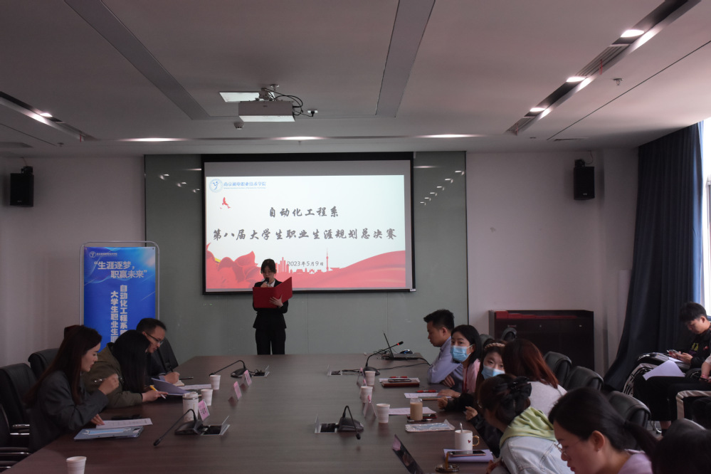 为进一步推动职业生涯规划教育,帮助同学们提高职业生涯规划能力,拓宽职业视野,增强自信心。自动化工程系于5月9日在育德楼303会议室举办了系部职业生涯规划总决赛。本次比赛特邀自动化工程系书记高水冕、就创业中心主任沈小军、壹生涯工作室吴瑶、于靖欢老师、校职规赛优秀指导教师俞青、贾涵担任评委,全体辅导员和参赛选手参加。刘敏婕和曹家乐担任主持。