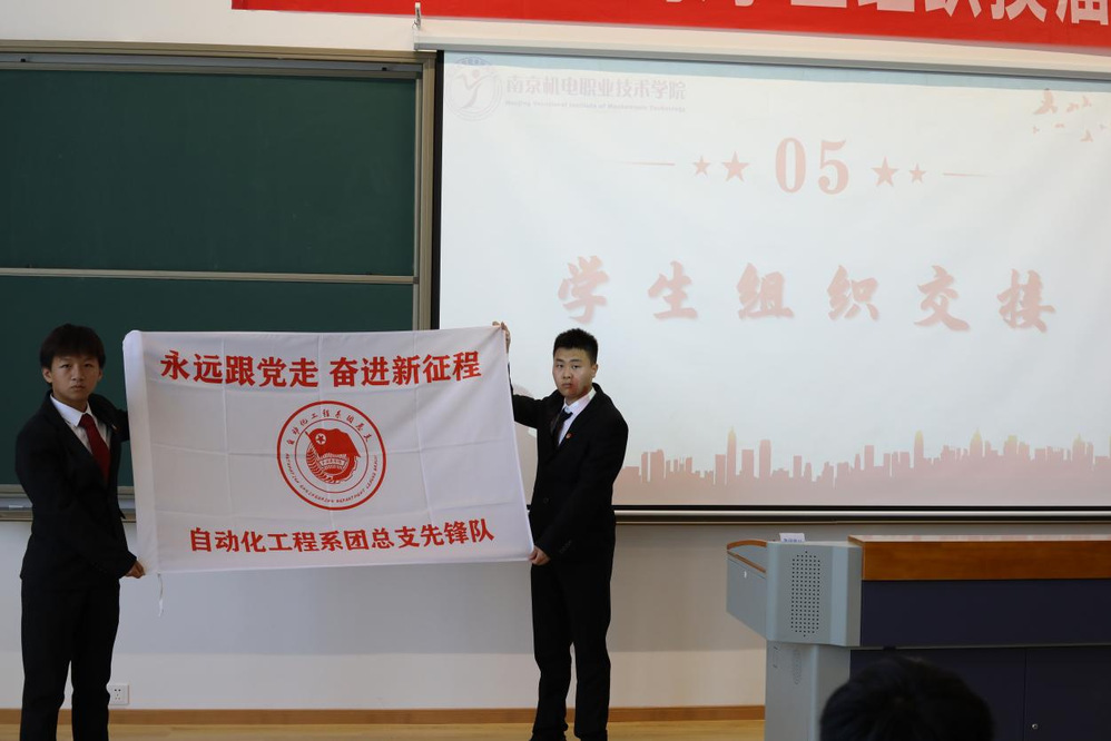 随后21级学生干部代表学生会副主席冷承阳与22级学生干部代表团总支副书记陈今丰分别发言,由寄语唤期待,由信念唤担当。为传承学生组织的经验与智慧,增加学生干部的使命感和责任感,上一届学生组织成员向新一届学生组织成员交接工作并交换旗帜。