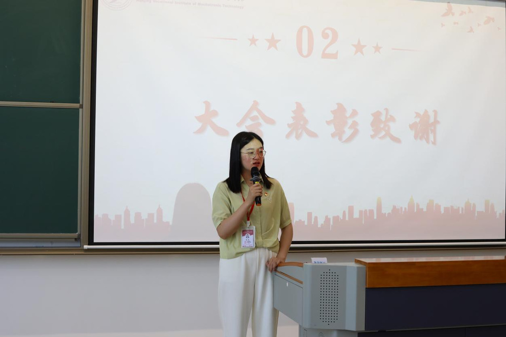在回顾学生会与团总支的年度剪影中,拉开了本次换届仪式的帷幕,接着周老师对学生组织付出辛勤努力的所有同学表示衷心的感谢。她说,正是因为同学们的辛勤工作、无私奉献和精彩表现,学生组织才能勃勃生机,各项工作才能顺利开展,同时也希望新一届学生干部不断突破自我、锐意进取,为团总支工作更上一层楼。