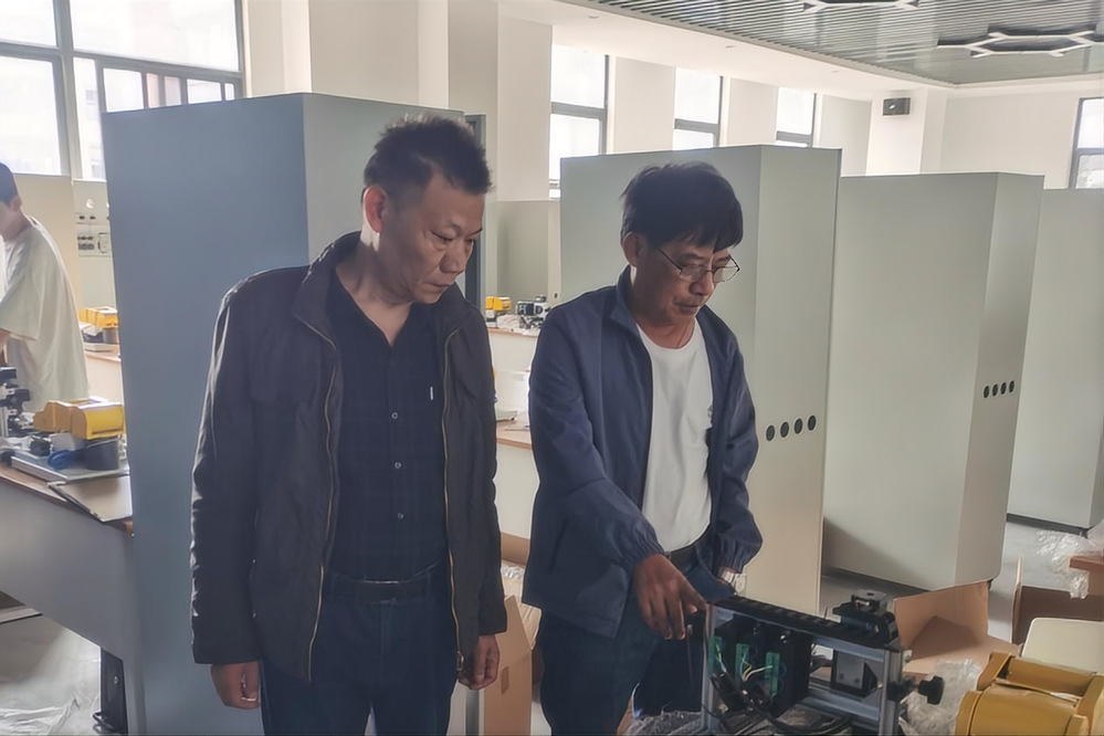 此次培训特邀请大连锂工科技有限公司工程师给系部教师进行现场培训,围绕本次重点验收项目工控机及其控制系统、专用综合控制柜、小型并联机器人等进行,具体内容包括综合控制柜和各模块间的通讯、基础设备操作以及罗克韦尔各种工控软件的编程操作等。