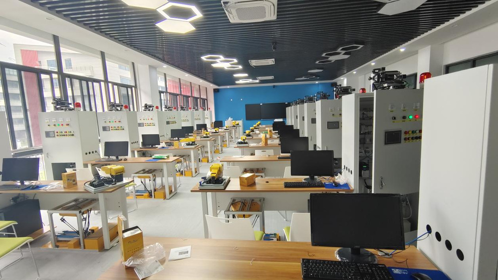 罗克韦尔智能制造协同创新中心自合同签订日起便进入整体教学环境升级、实训室装修等环节,截至2023年国庆前所有工程已全部结束进入最后的调试验收环节。该中心不仅作为米兰官方网页版的教学、研究开发、自动化工程应用基地,而且为罗克韦尔自动化技术的宣传、推广、应用、企业技术培训提供支持。电气自动化技术教研室全体教师于10月10日下午,在知行楼203开展培训学习。