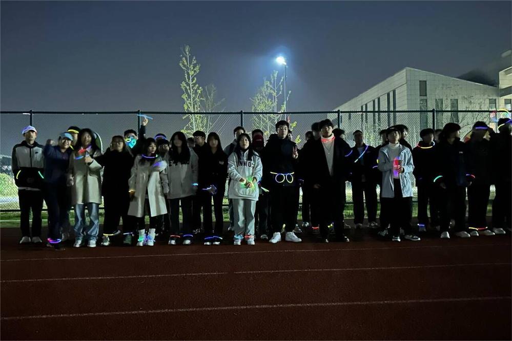 活动前,心理气象站全体成员做了充分准备。步入活动现场,同学们伴随着夕阳的落下,同学们带着荧光棒在操场上跑步,形成一道靓丽的风景线。跑步过程中,同学们积极交流生活中遇到的困难,并且释放压力。