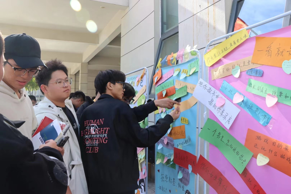 活动最后,同学们纷纷驻足认真观看贴满标签的白板墙,偶尔可以听到同学们对某个标签的愤愤之语,有些同学也毫不吝啬地分享在生活中被标签束缚的事情……面对标签,总让我们忘记自己是谁,内心与思想在标签定义下被禁锢了层层枷锁。希望通过撕掉标签、打破枷锁,能够让大家释放压力、拒绝焦虑、放飞青春梦想。