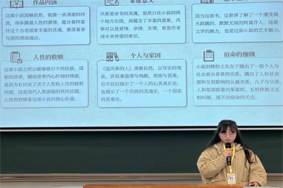 书籍是人类知识的宝库,阅读便是打开宝库的钥匙。为了让同学们接受文化熏陶,拓宽视野,陶冶性情,12月14日,自动化工程系于勤学楼105开展第十三期读书分享会。本次分享会由生活部副部长陈琪担任分享人,分享的书籍是《追风筝的人》,自动化工程系学生会全体成员以及各班班长参加。