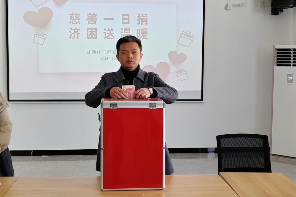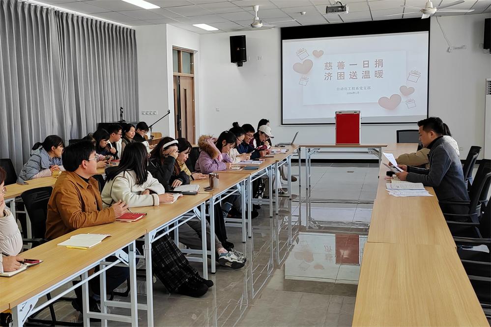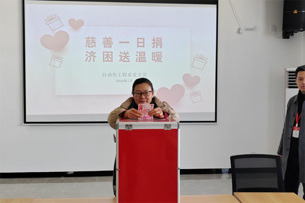 根据南京市开展2023 年“慈善一日捐·济困送温暖”活动的精神和工作安排,2024年1月11日下午,自动化工程系党支部开展“慈善一日捐,济困送温暖”现场捐款活动,本次活动由党支部副书记高水冕同志主持,自动化工程系全体教职员工参加了活动。