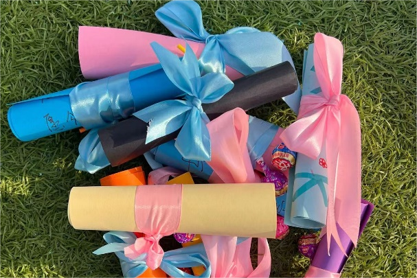 随后,同学们在贺卡上写下了自己的心底话,这些贺卡被巧妙地卷起来,用丝绸捆绑在棒棒糖上,形成了独特的“匿名信”。同学们随机领取贺卡,互换心声,在甜蜜与快乐中感受到了彼此之间的真诚与关爱。