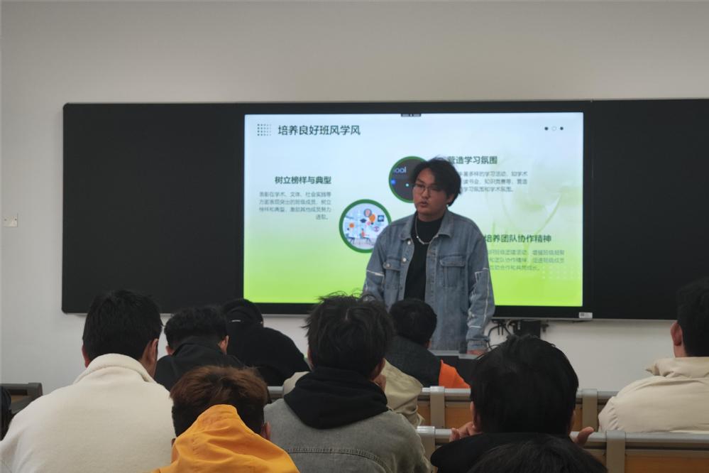 首先是校先进班集体班长代表谢宇翔为大家分享班级管理经验,就“如何团结班委、形成良好班风、营造和谐的同学关系、培养良好的学习氛围”几个问题给大家做了分享。