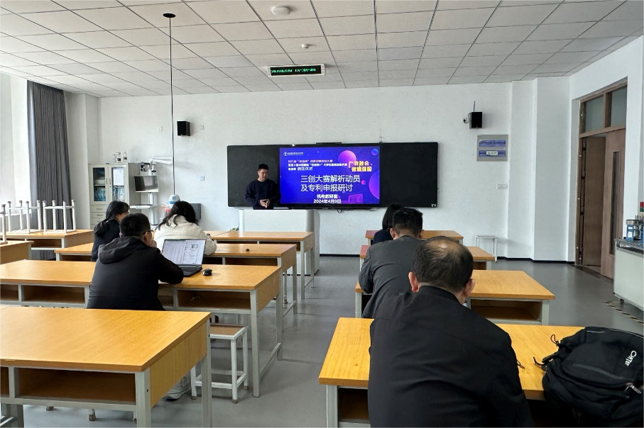 为积极响应米兰官方网页版举办的第九届“知链杯”创新创意创业大赛暨第十届中国国际“互联网+”大学生创新创业大赛,积极推进科研成果转化,挖掘科研成果转化的潜力,增强教师知识产权保护意识,普及专利申请相关知识,4月9日下午,机电一体化技术教研室在敏行楼305教室开展了“三创大赛解析动员及专利申报”教研活动。机电一体化技术教研室全体教师参加会议,蔡可义主持活动。