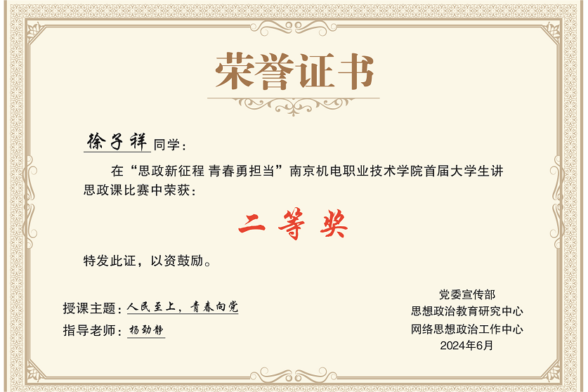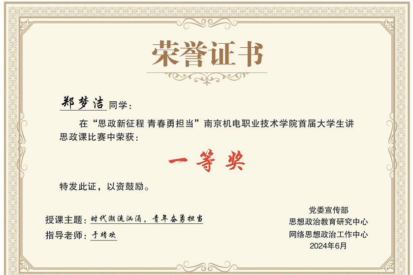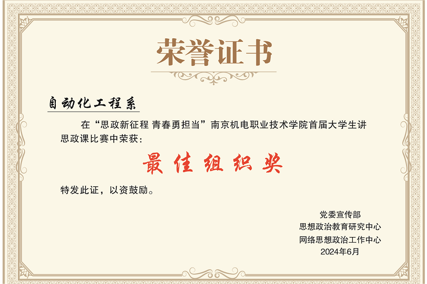 2024年6月18日,米兰官方网页版首届大学生讲思政课比赛圆满落下帷幕,自动化工程系荣获最佳组织奖,郑梦洁(指导教师:于靖欢)荣获一等奖,徐子祥(指导教师:杨劲静)荣获二等奖。