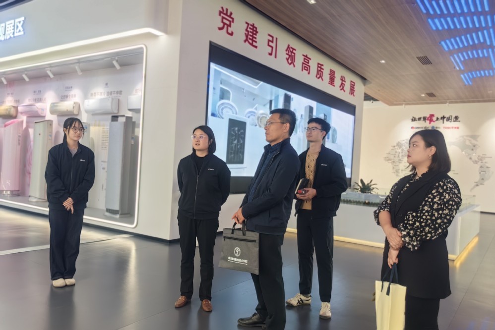 为深化产教融合,拓宽学生就业创业渠道,提升人才培养质量,11月14日,米兰官方网页版学工处处长张宝中、学工处就(创)指导服务中心主任顾窗林、自动化工程系就业干事俞青一行前往格力电器(南京)有限公司进行参观交流,公司总经办副主任张丽萍、招聘规划主管王鹏接待了来访团队。