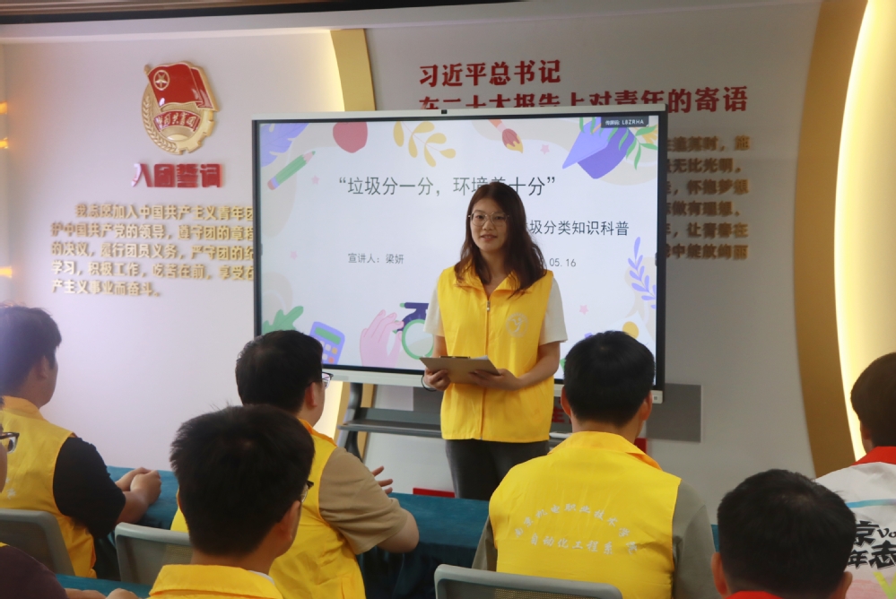 活动伊始,团员青年们来到大丰社区服务中心,大家围坐一堂,畅谈大学生活,分享成长感悟,拉近彼此距离。随后,学生代表梁妍围绕垃圾分类展开宣讲,通过生动的案例,深入浅出地讲解垃圾分类的重要意义、分类标准及操作方法,让同学们深刻认识到垃圾分类对环境保护的积极作用,进一步强化了环保意识。