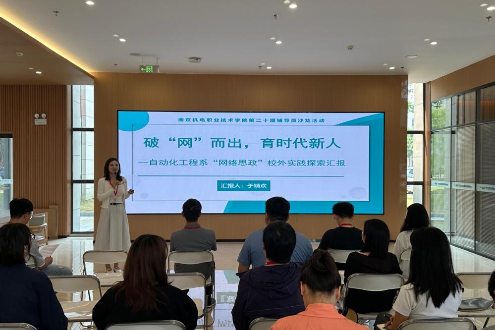 自动化工程系专职辅导员于靖欢主持本次沙龙。于靖欢汇报了自动化工程系学工团队近期赴南京旅游职业技术学院、南京信息职业技术学院调研成果,重点介绍了两校在网络思政平台建设、数字化育人模式方面的创新做法。于靖欢现场与数字人“思小政”的创新搭档主持成为沙龙亮点。