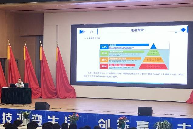 9月15日,自动化工程系机电一体化技术专业在乐学楼101报告厅成功举办了面向2025级新生的专业介绍宣讲会。本次会议旨在引导新生准确把握专业发展方向,树立正确的学习目标,为人才培养工作奠定坚实基础。宣讲会由机电一体化技术专业教师蔡新宇主持。